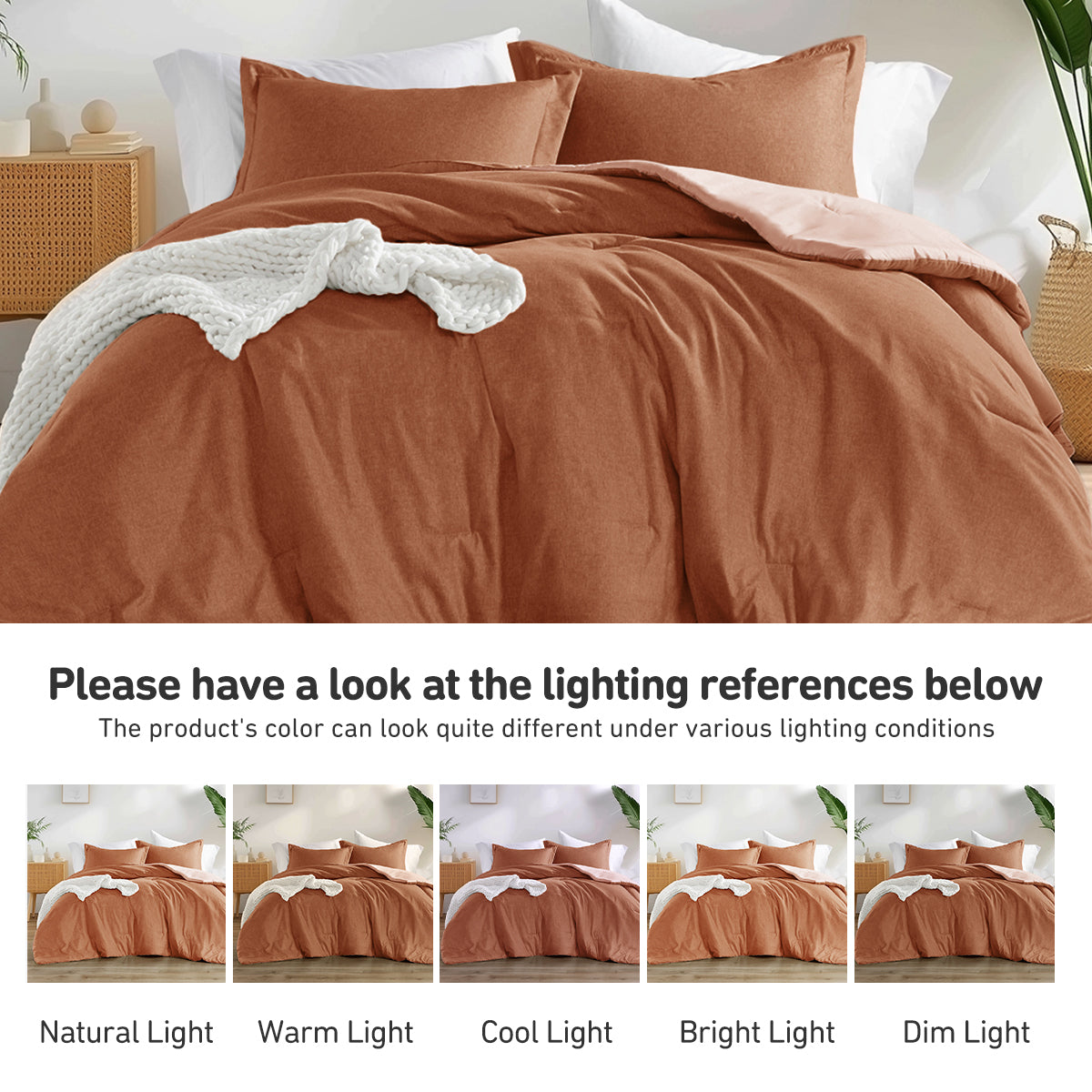 Crafted from a soft and breathable microfiber, this chambray-like textured printed bedding set assures a casual yet comfortable experience. Designed for those who prefer a lightweight yet warm bedding option, its fluffy nature adds an extra layer of coziness and making it perfect for year-round use.